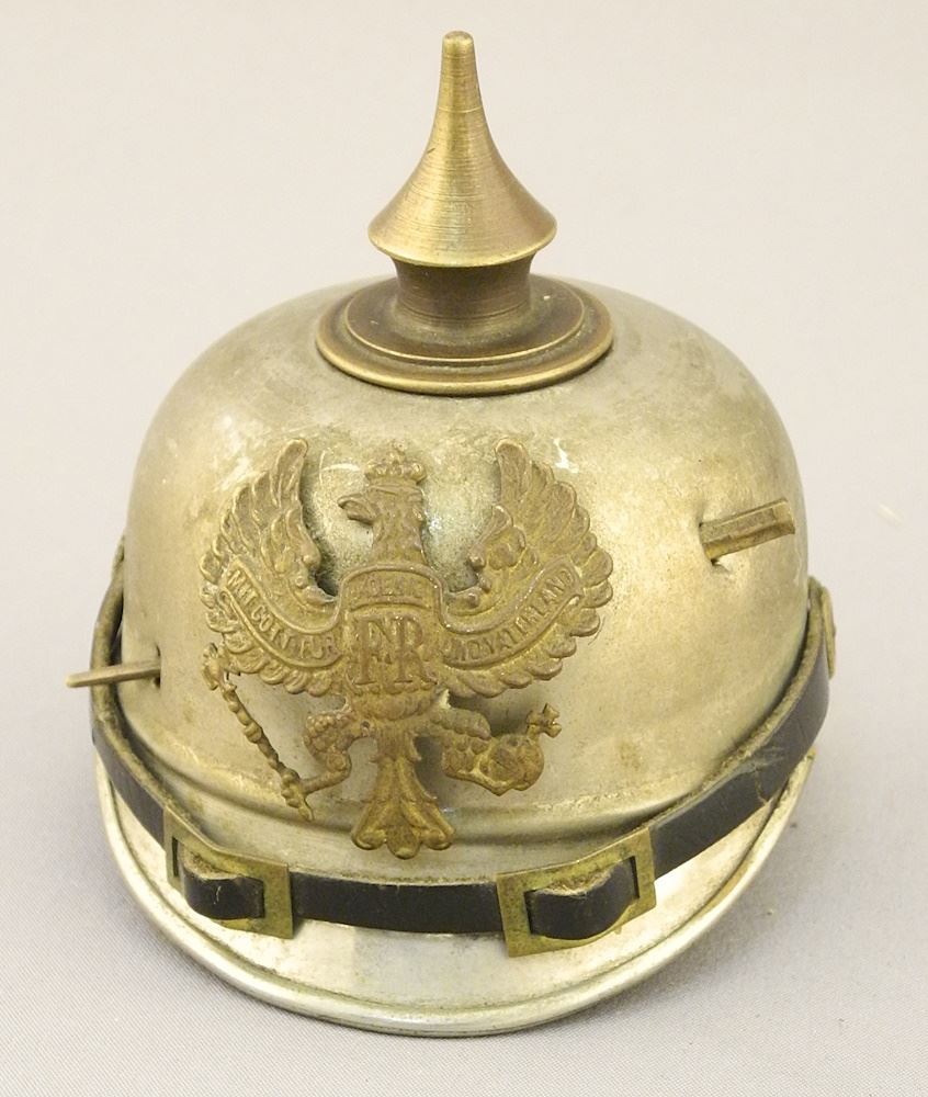 Antique Picklehaub Inkwell with 3 German Belt Buckles & 4 Keys.