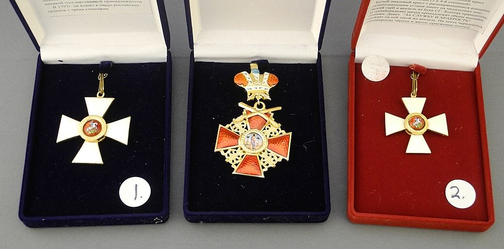 6 Reproduction Russian Imperial Orders: St. Anne / St. George / St. Vladamir, with Cases.