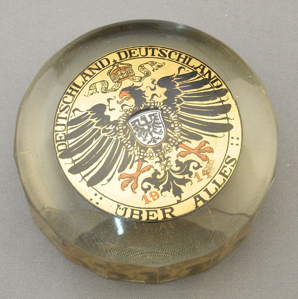 3 Imperial German Items: Plaque (5 5/8"w) / Paper Weight / Metal Cover.
