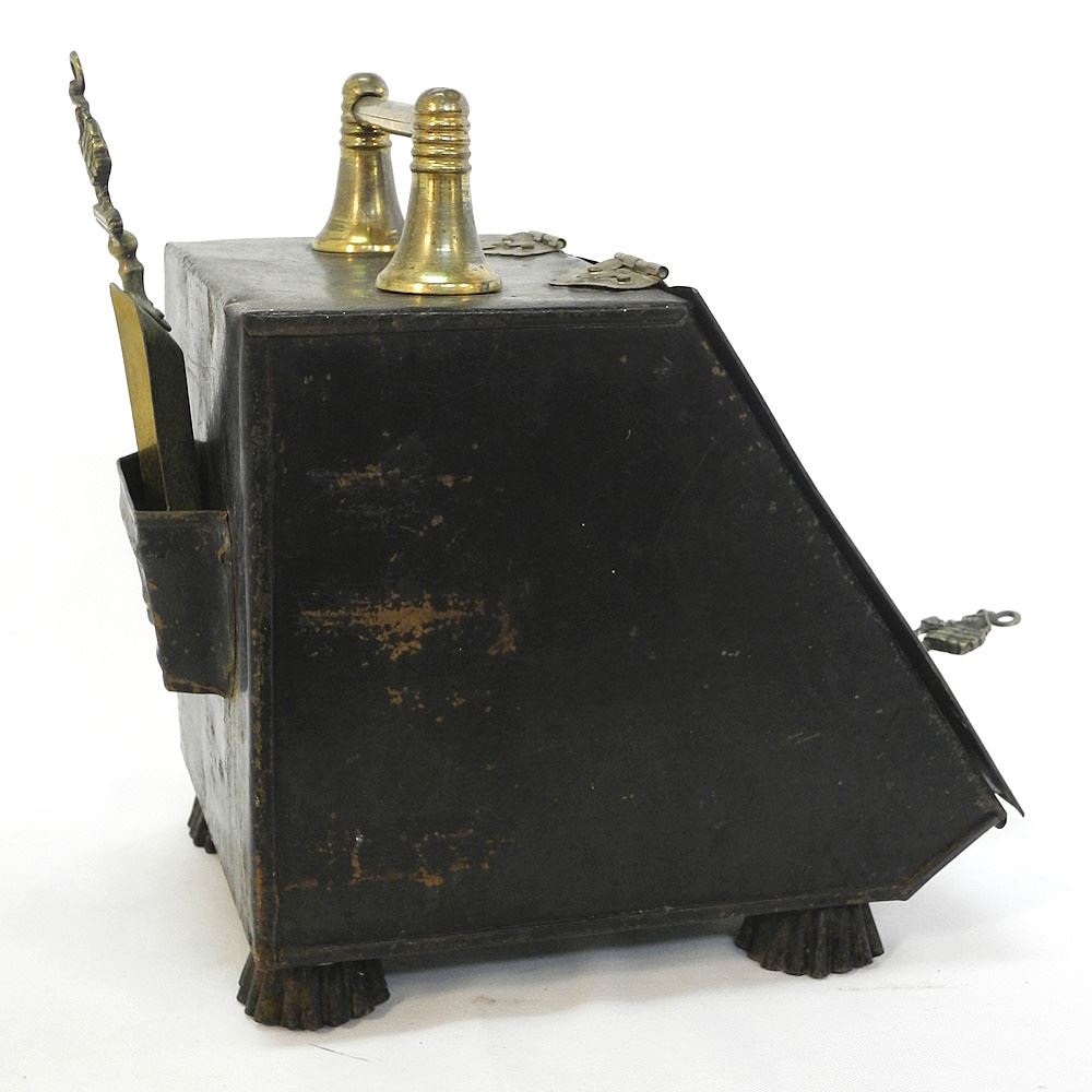 19th C. Japanned Coal Scuttle, 13 1/2" x 9 1/2" x 14".