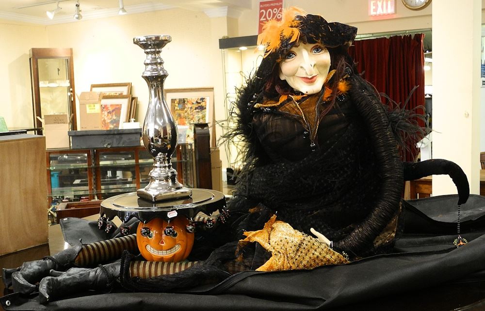 LOT 181 "Katharine's Collection" Witch Doll with Pumpkin Cake Stand & Candlestick. Estimate: $200 - $400 Sold For: $50 Auction Date: Tuesday, September 10 2024 at 4:00 PM