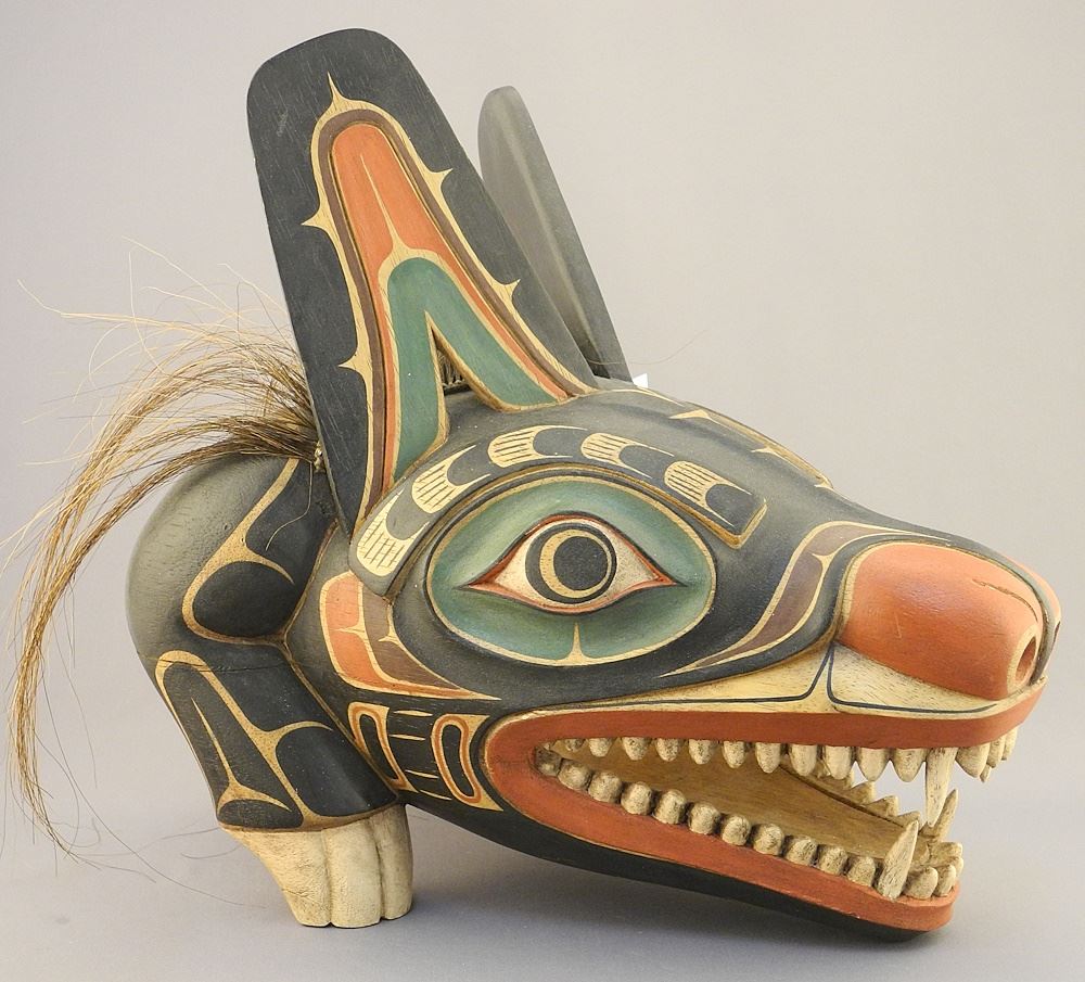 LOT 308 Reproduction Northwest Coast Style "Wolf" Mask, 12"L. Estimate: $60 - $100 Sold For: $300 Auction Date: Tuesday, September 10 2024 at 4:00 PM