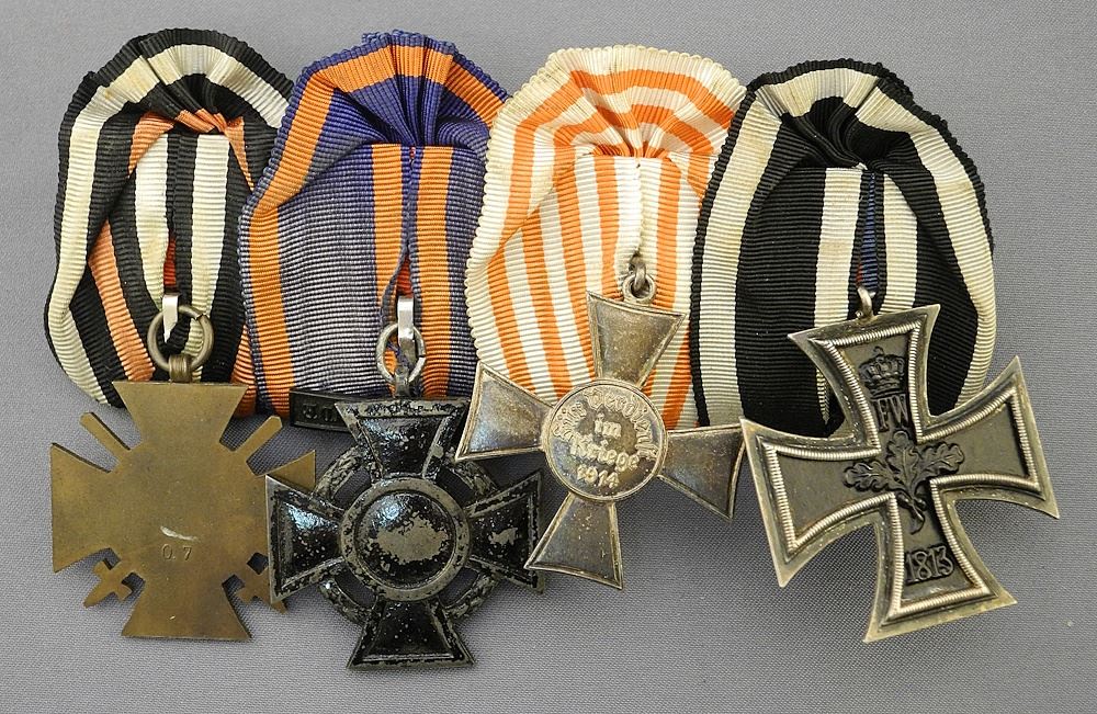 LOT 292 Imperial German Medal Bar: Iron Cross / Bremen / Oldenburg / Service Cross. Estimate: $100 - $200 Sold For: $250 Auction Date: Tuesday, September 10 2024 at 4:00 PM