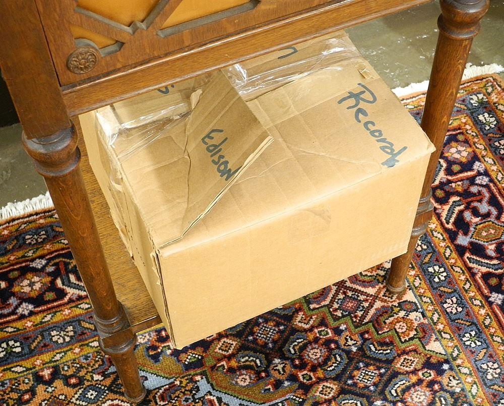 Oak Edison A-100 Diamond Disc Phonograph with Group of Records.