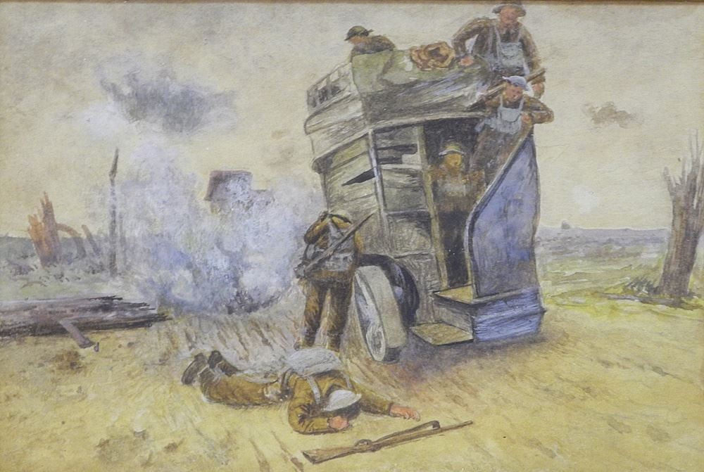 Watercolour Attributed to Arthur H. Parker, 4 1/4" x 6 1/2", "Somewhere in France".