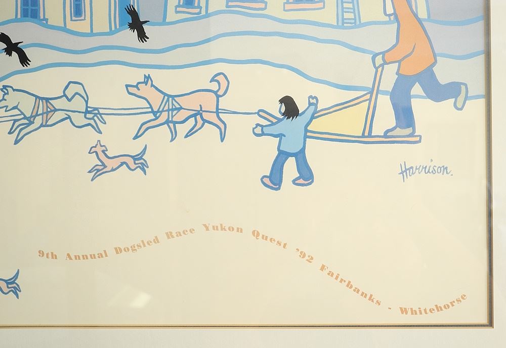 Colour Print After Ted Harrison, 17 1/4" x 18 1/2", 9th Annual Dog Sled Race...'92".