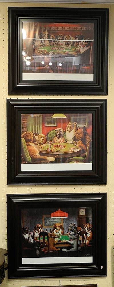 LOT 194 3 Framed Prints After Coolidge, 15 1/2" x 20", "A Friend in Need", "Poker Sympathy" & "A Bold Estimate: $80 - $120 Sold For: $120 Auction Date: Tuesday, September 10 2024 at 4:00 PM
