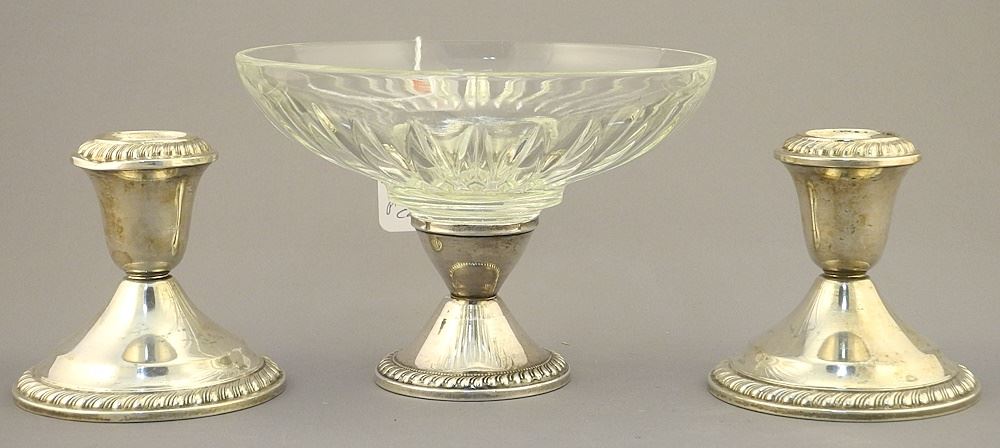 LOT 134 Collection of Sterling Silver (candlesticks / nut dishes / compote) & Plated Caster. Estimate: $100 - $200 Sold For: $90 Auction Date: Tuesday, September 10 2024 at 4:00 PM
