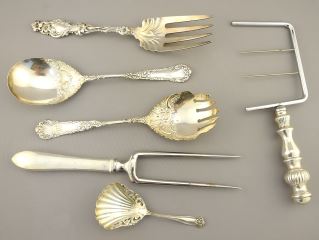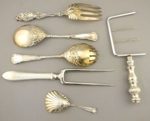 LOT 125 Sterling (Marked) Silver Serving Fork (116 Grams) & Various Cutlery Items. Estimate: $80 - $100 Sold For: $100 Auction Date: Tuesday, September 10 2024 at 4:00 PM