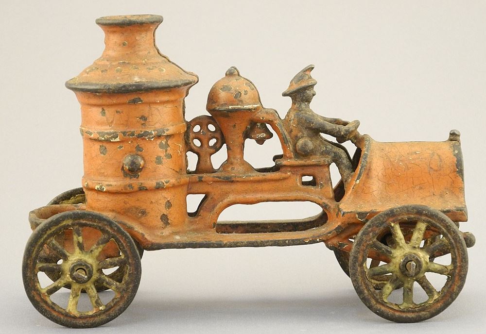 LOT 290 Antique Cast Iron Fire Engine, 6 1/2"L. Estimate: $50 - $100 Sold For: $90 Auction Date: Tuesday, September 10 2024 at 4:00 PM