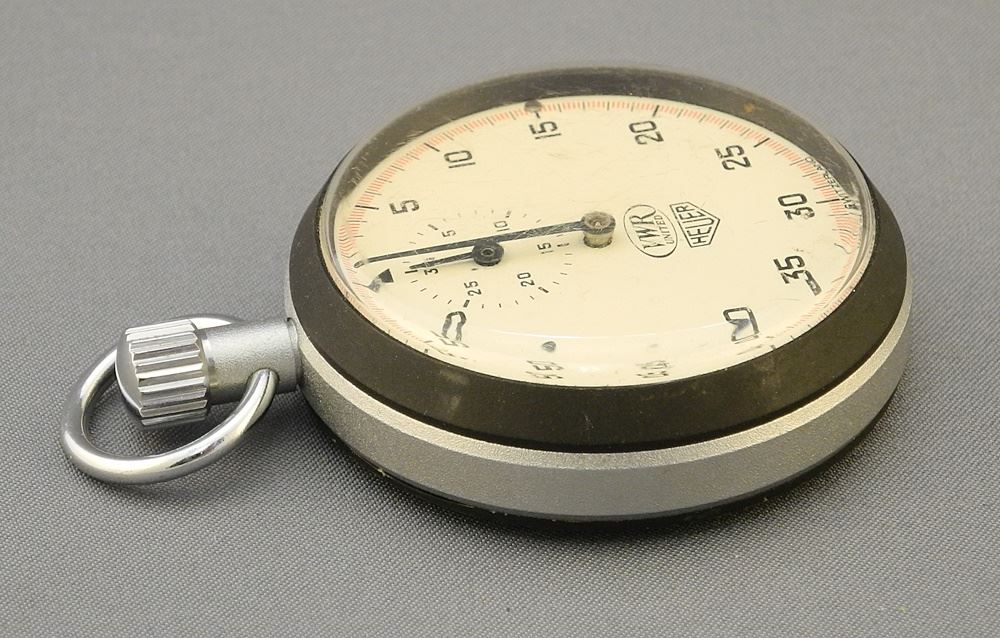 LOT 325 Heuer VWR United Stopwatch, 2 1/8" Diameter, Remnant Paper Label, Not Working. Estimate: $60 - $100 Auction Date: Tuesday, September 10 2024 at 4:00 PM