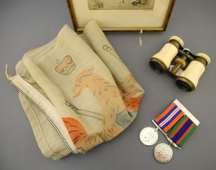 LOT 178 2 Canadian WW2 Medals with German Banner / Etching / Oper Glasses. Estimate: $60 - $100 Sold For: $100 Auction Date: Tuesday, September 10 2024 at 4:00 PM