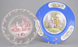 4 China Glass Wares: Pair "Crowne" (7 7/8"h) Vases / Sevres-Style Dish / Enameled Glass Dish.