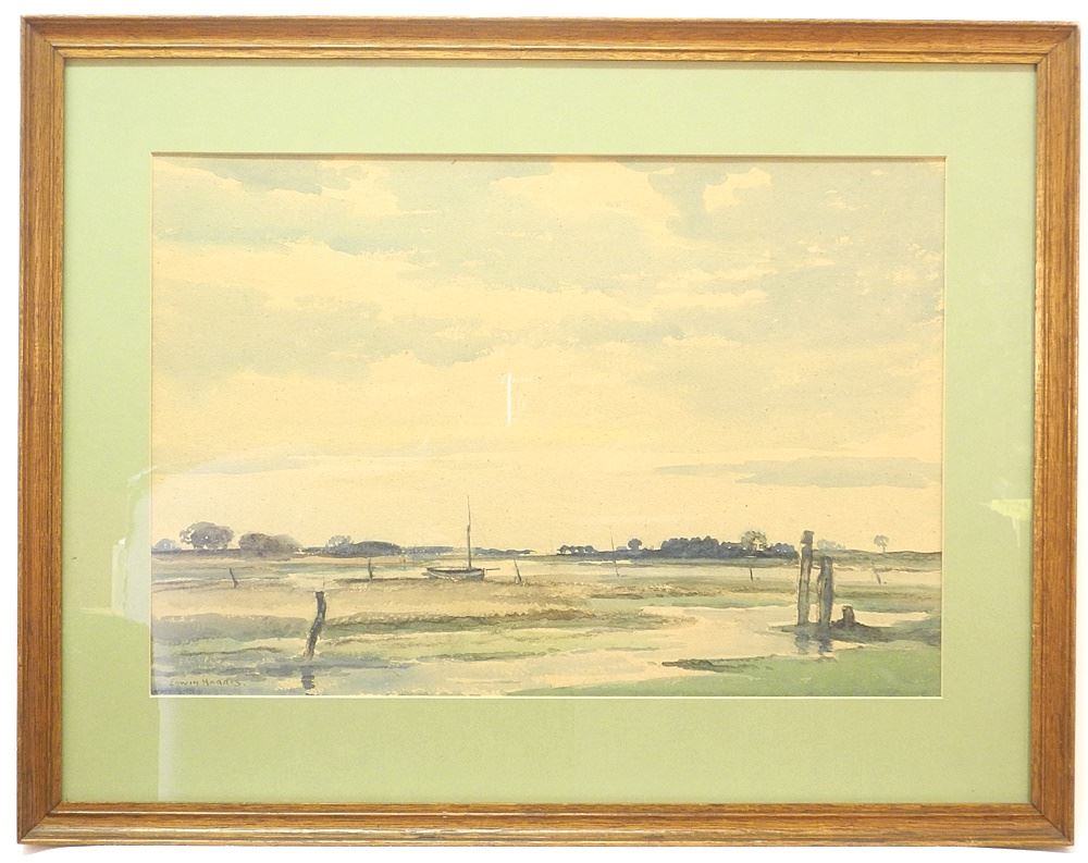 LOT 218 Watercolour signed Edwin Harris, 14 1/2" x 21 1/4", "Bosham on Sea" (toning noted). Estimate: $50 - $100 Auction Date: Tuesday, January 14 2025 at 4:00 PM