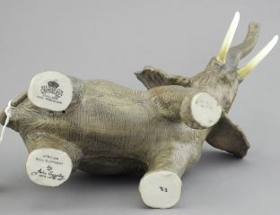 African Bull Elephant by John Aynsley, signed F.G., 10".