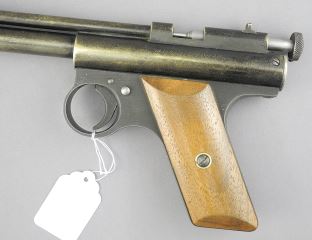 LOT 346 C.1935 Benjamin Air Rifle Co.177 Air Pistol, 10 7/8"L (works but low pressure). Estimate: $100 - $200 Sold For: $90 Auction Date: Tuesday, January 14 2025 at 4:00 PM