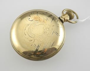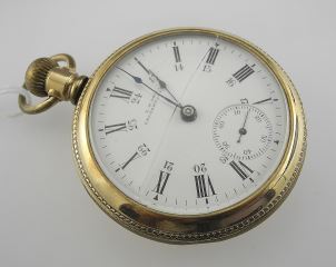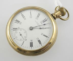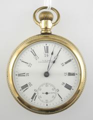 L.H. Doll Calgary Gold Plated Waltham Pocket Watch, 2 1/8" Diam., 117g (cracked).