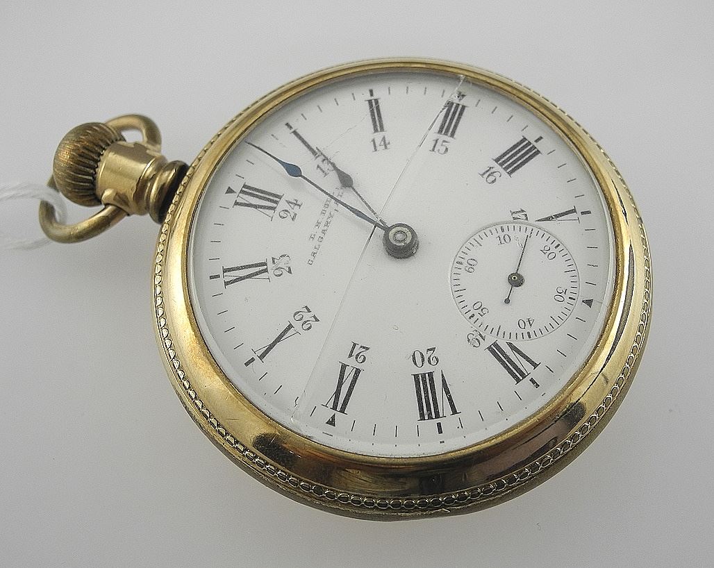 LOT 127 L.H. Doll Calgary Gold Plated Waltham Pocket Watch, 2 1/8" Diam., 117g (cracked). Estimate: $60 - $100 Sold For: $70 Auction Date: Tuesday, January 14 2025 at 4:00 PM
