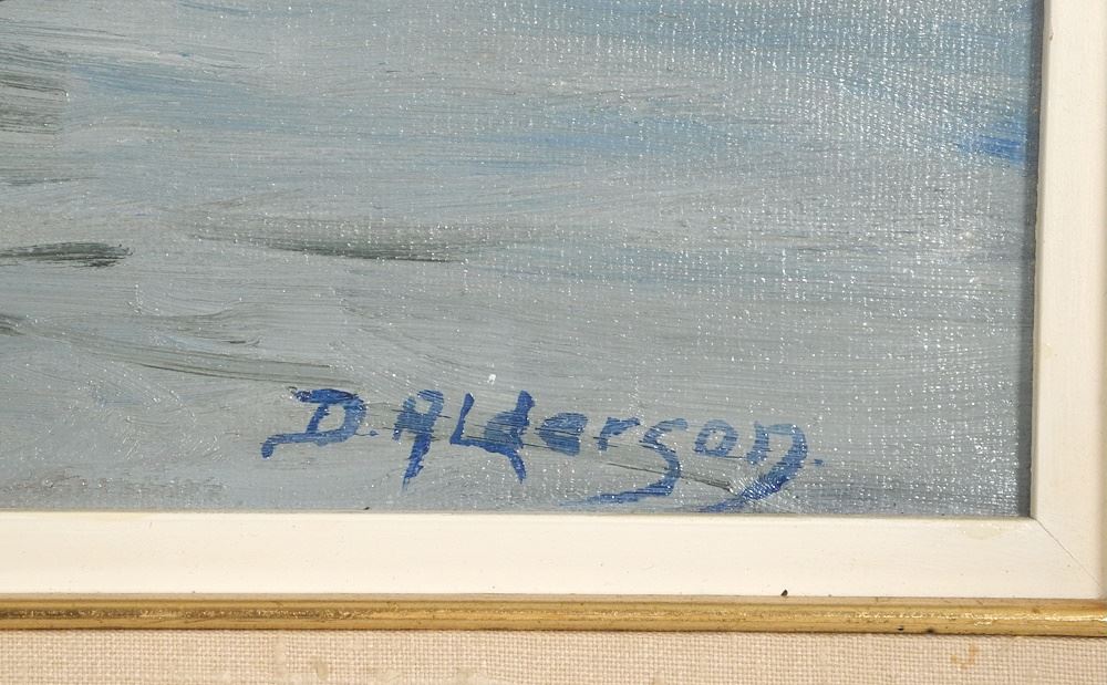 LOT 138 Oil on Canvas signed D. Alderson, 17 1/2" x 23 1/2", "Millers Cove". Estimate: $50 - $100 Sold For: $25 Auction Date: Tuesday, January 14 2025 at 4:00 PM