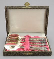 6 Thai Sterling Coffee Spoons in Case, 21g.