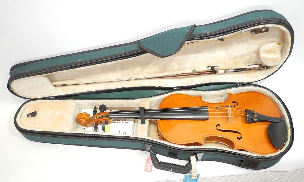 LOT 352 "Palatino Handcrafted" Violin with Nylon Case & 2 Bows, 23 1/2"L. Estimate: $75 - $120 Sold For: $70 Auction Date: Tuesday, January 14 2025 at 4:00 PM