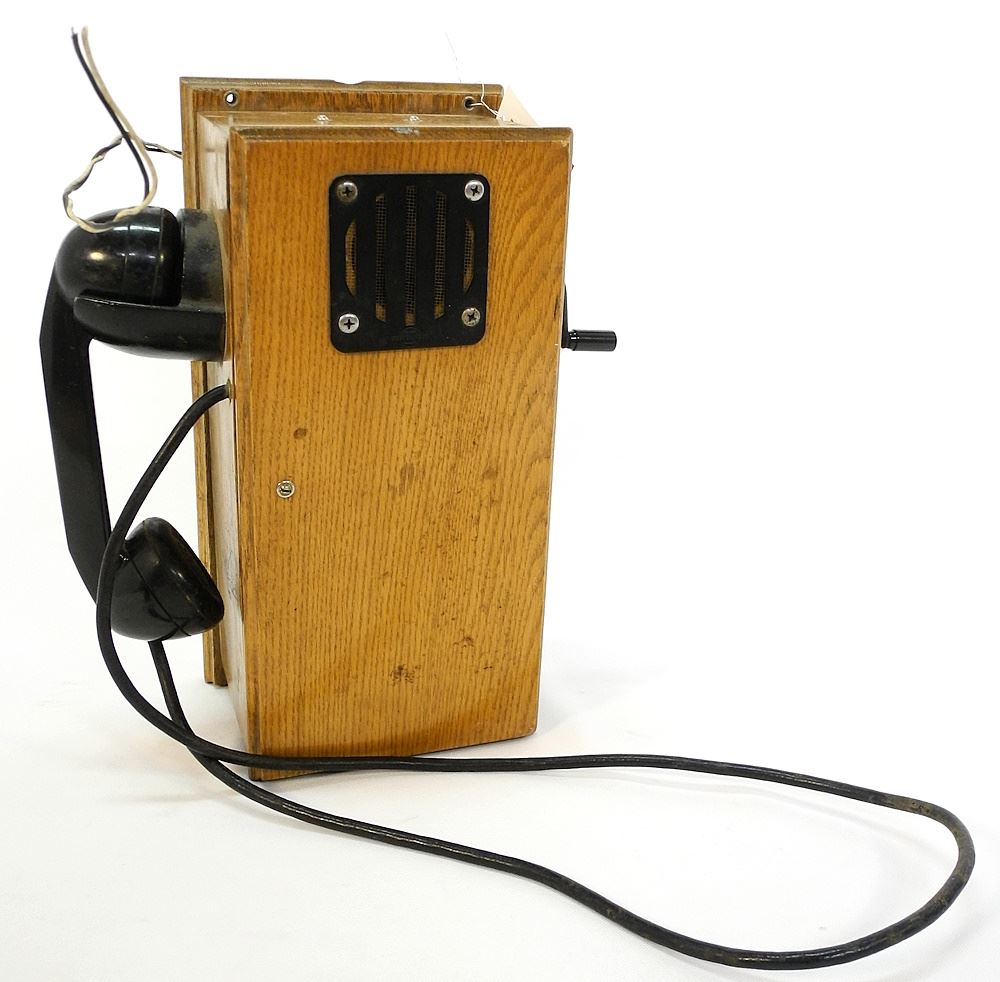 Connecticut Oak Cased Wall Phone, 14 3/8"h.