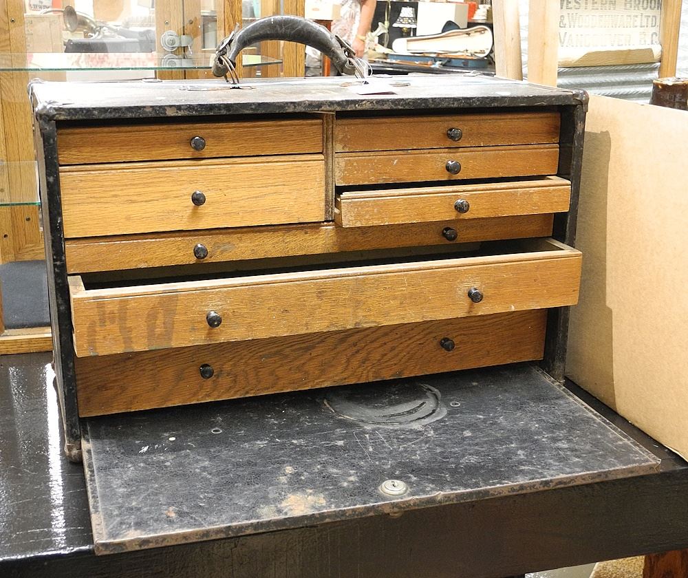 LOT 207 Antique Machinists Tool Chest, As Found - no key, 12 1/2" x 20 1/8" x 9 1/2". Estimate: $100 - $150 Auction Date: Tuesday, January 14 2025 at 4:00 PM