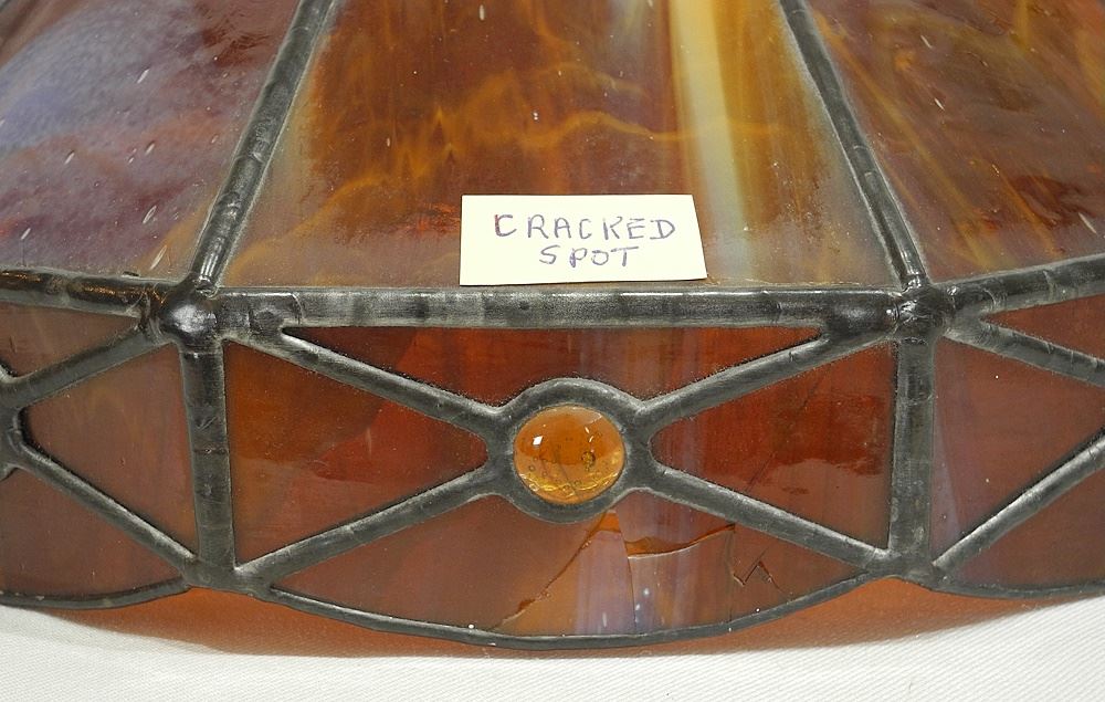 Two Leaded Glass Ceramic Table Lamps , 23"h (one shade noted).
