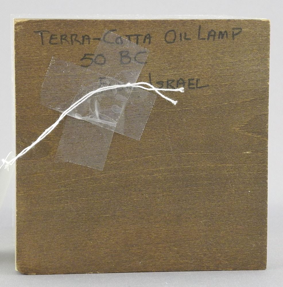 Terracotta Oil Lamp, 50 BC - acquired Israel, 3 1/4" L. with case.
