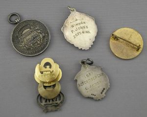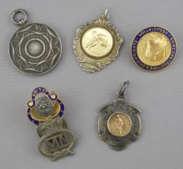 Kashmir Box of Sterling Silver & Other Athletic Awards / Pins / Bracelet.