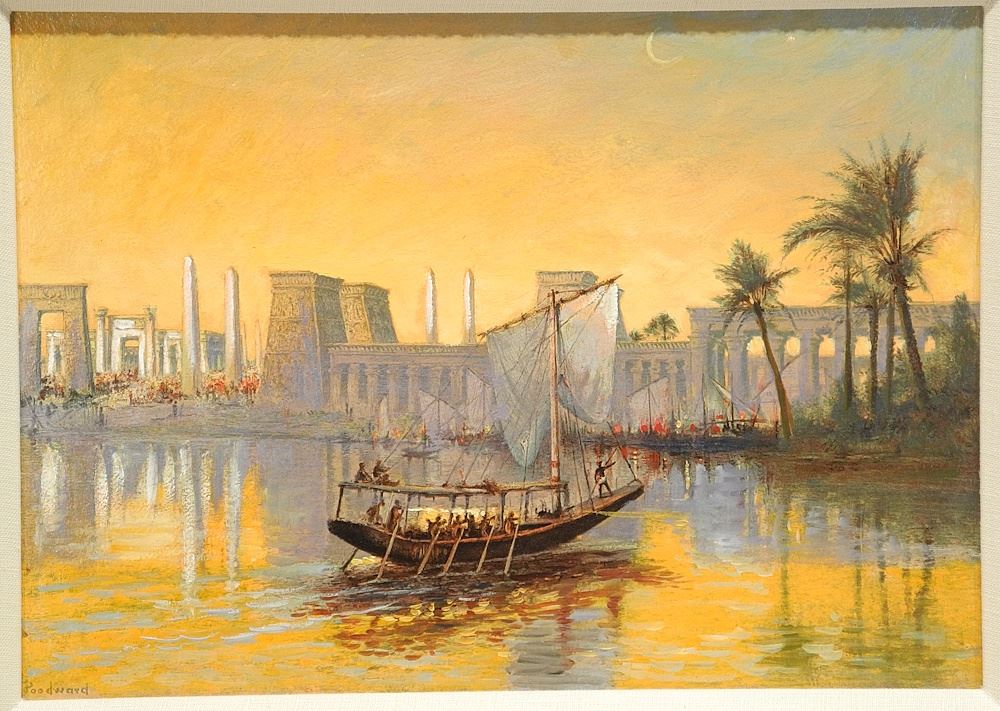 LOT 70 Facsimile on Board by J.D (John Douglas) Woodward, 9 1/2" x 13 1/4", "Egyptian Evening Scene". Estimate: $50 - $100 Sold For: $30 Auction Date: Tuesday, January 14 2025 at 4:00 PM