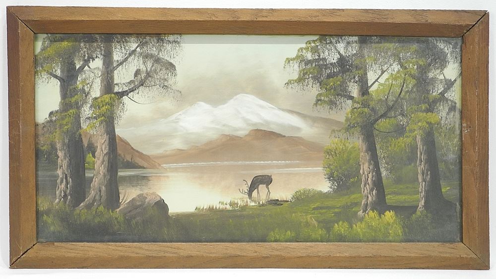LOT 28 Pair of Oil on Paper by J.A.Speer (label verso), 9 1/2 x 19 1/2", "Forest Fire". Estimate: $50 - $100 Sold For: $30 Auction Date: Tuesday, March 11 2025 at 4:00 PM