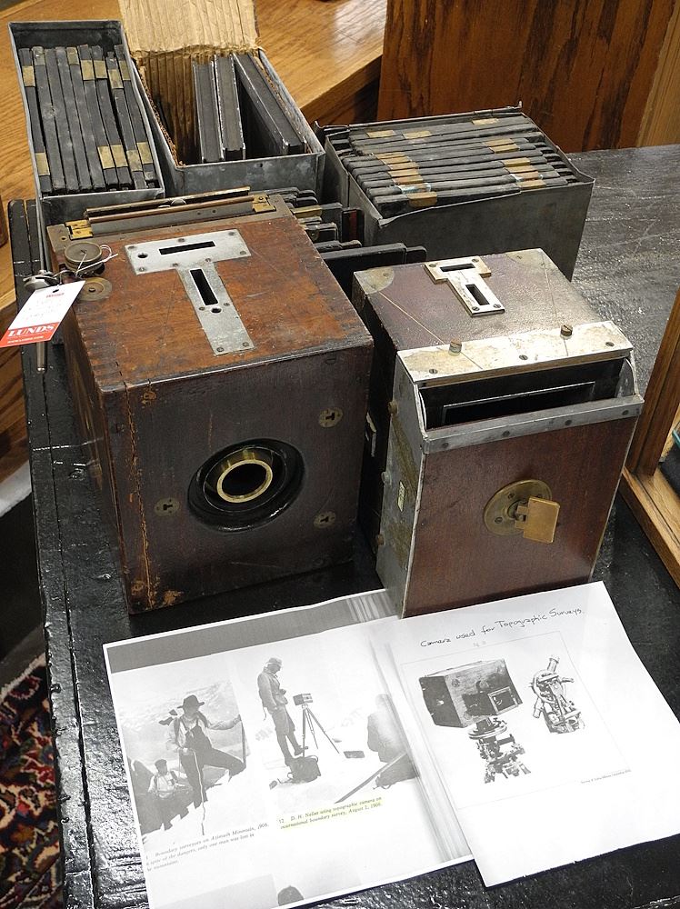 LOT 87 Antique Topographic Camera with Photo Plates, Largest Section 7 x 8 1/2 x 7 3/4". Estimate: $100 - $200 Sold For: $300 Auction Date: Tuesday, March 11 2025 at 4:00 PM