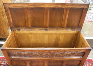 LOT 144 20th C. Oak Coffer, 47"w. Estimate: $100 - $150 Sold For: $90 Auction Date: Tuesday, March 11 2025 at 4:00 PM