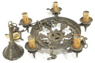 LOT 204 C.1920's Cast Metal Pendant Ceiling Fixtures, 18" Diameter. Estimate: $50 - $60 Sold For: $50 Auction Date: Tuesday, March 11 2025 at 4:00 PM
