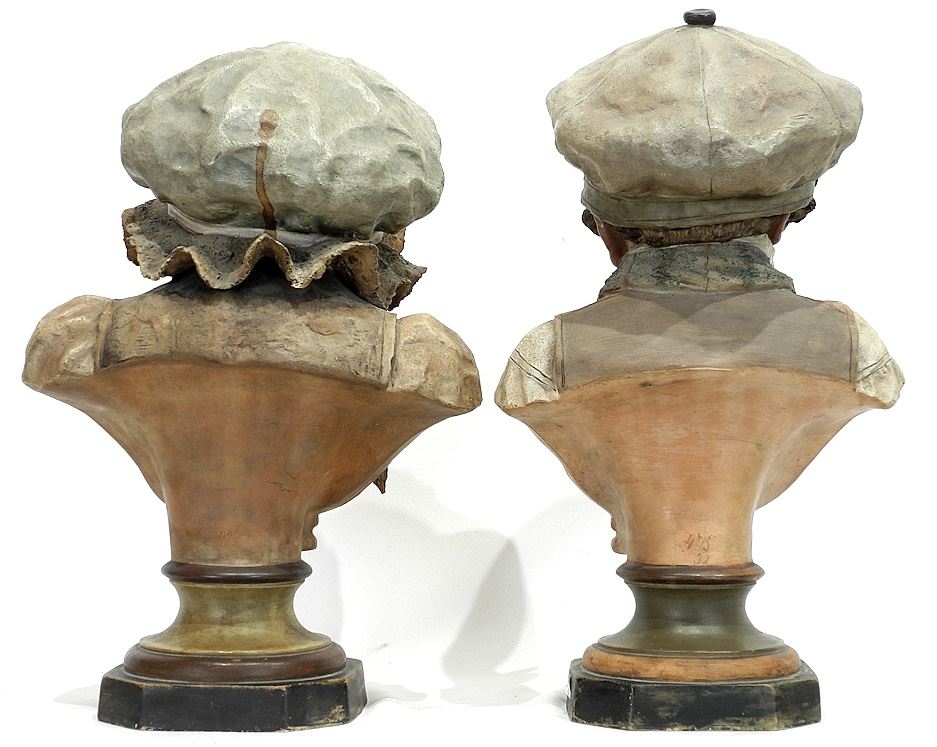 LOT 135 Pair of Continental Pottery Busts, 17 1/2"h (restored). Estimate: $60 - $100 Auction Date: Tuesday, March 11 2025 at 4:00 PM