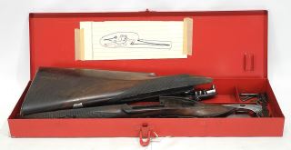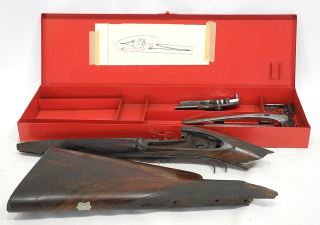 LOT 227 Fragmentary Antique Percussion Firearm with Red Case, 18 3/4"w, NO EXPORT. Estimate: $50 - $60 Sold For: $40 Auction Date: Tuesday, March 11 2025 at 4:00 PM
