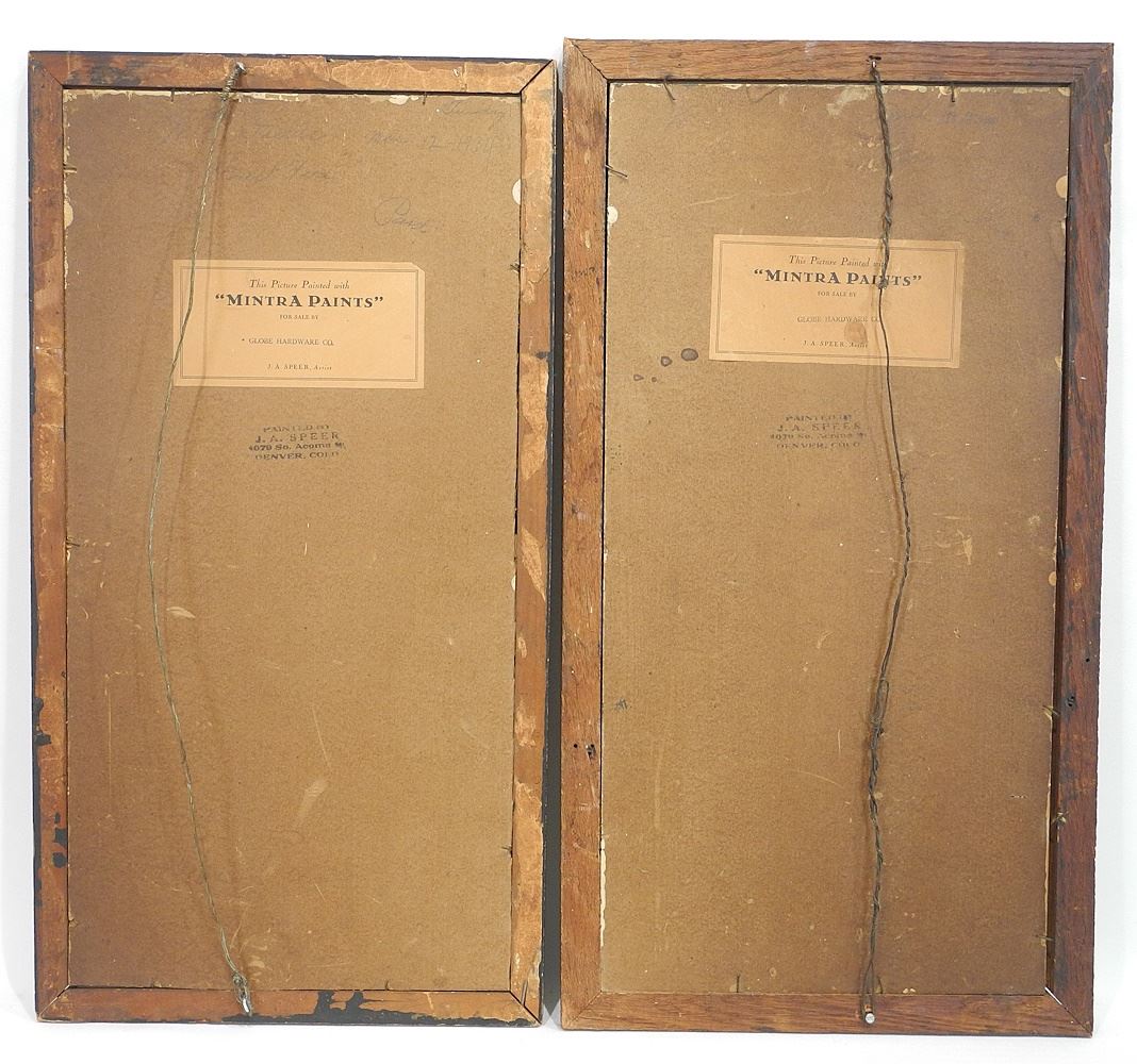 Pair of Oil on Paper by J.A.Speer (label verso), 9 1/2 x 19 1/2", "Forest Fire".