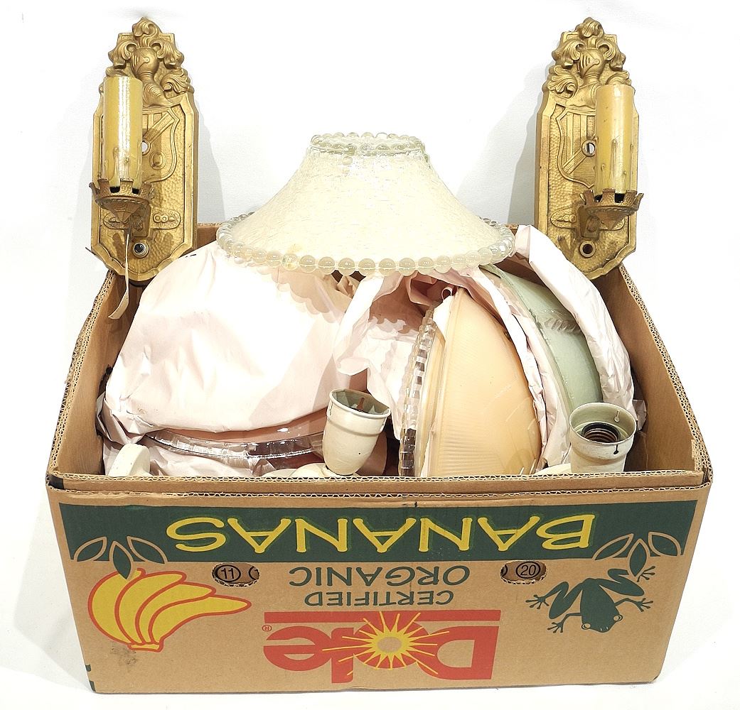 LOT 59 Collection of Vintage Glass Ceiling Shades & Brass Scones. Estimate: $50 - $100 Sold For: $180 Auction Date: Tuesday, March 11 2025 at 4:00 PM