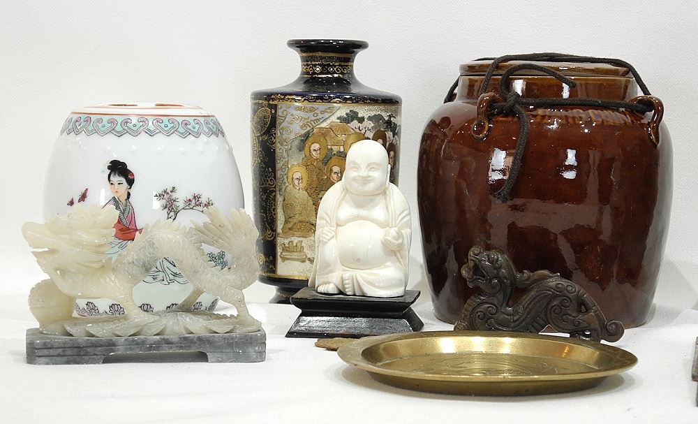 LOT 245 Collection of Chinese & Japanese Wares: Porcelain/Stone/Silk/Various, NO EXPORT. Estimate: $60 - $100 Sold For: $25 Auction Date: Tuesday, March 11 2025 at 4:00 PM