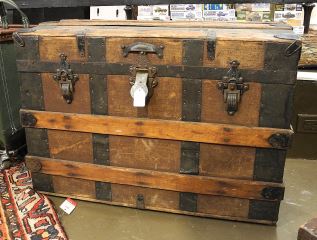 LOT 222 19th C. Wood Bound Trunk, 22"h. Estimate: $50 - $100 Sold For: $25 Auction Date: Tuesday, March 11 2025 at 4:00 PM