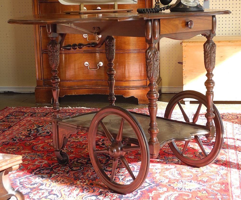 Carved Walnut Tea Wagon, 30" Folded.