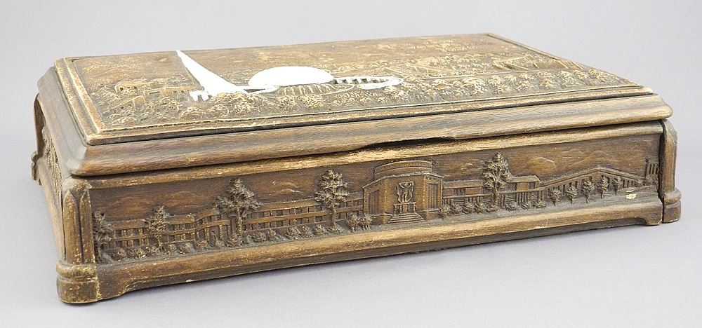 LOT 189 Syroco Wood "New York World's Fair 1939" Box, 10 7/8"w. Estimate: $50 - $60 Sold For: $70 Auction Date: Tuesday, March 11 2025 at 4:00 PM