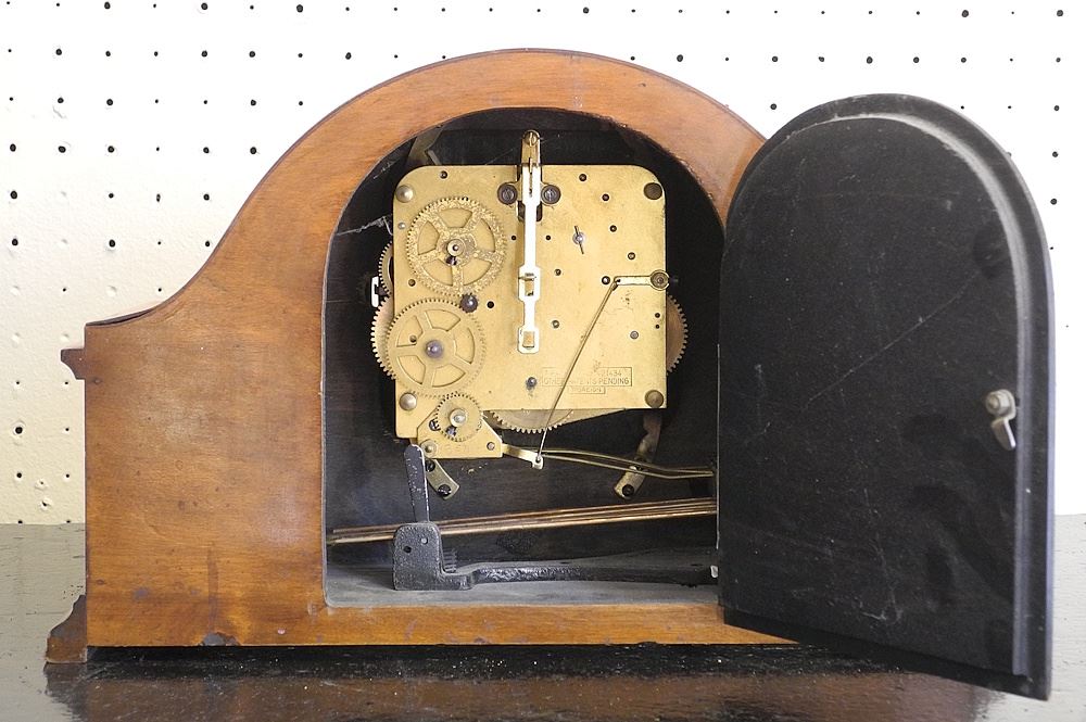 LOT 287 Vintage Walnut Mantle Clock, Marked "Foreign", 14 1/4"w. Estimate: $50 - $60 Sold For: $45 Auction Date: Tuesday, March 11 2025 at 4:00 PM