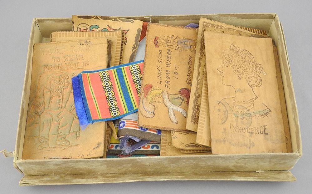 LOT 237 Collection of Leather Postcards C. 1900 & Early Felt National Flags Including Corea. Estimate: $50 - $60 Sold For: $50 Auction Date: Tuesday, March 11 2025 at 4:00 PM