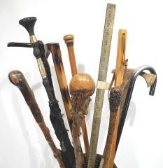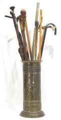 LOT 2 Brass Floor Vase with Collection of Canes & Sticks. Estimate: $80 - $120 Sold For: $90 Auction Date: Tuesday, March 11 2025 at 4:00 PM
