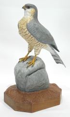 LOT 320 Hand Carved Sculpture Monogrammed RVC, 12 7/8"h, "Sharp Shinned Hawk" (prey animal missing). Estimate: $50 - $100 Sold For: $70 Auction Date: Tuesday, January 13 2026 at 4:00 PM