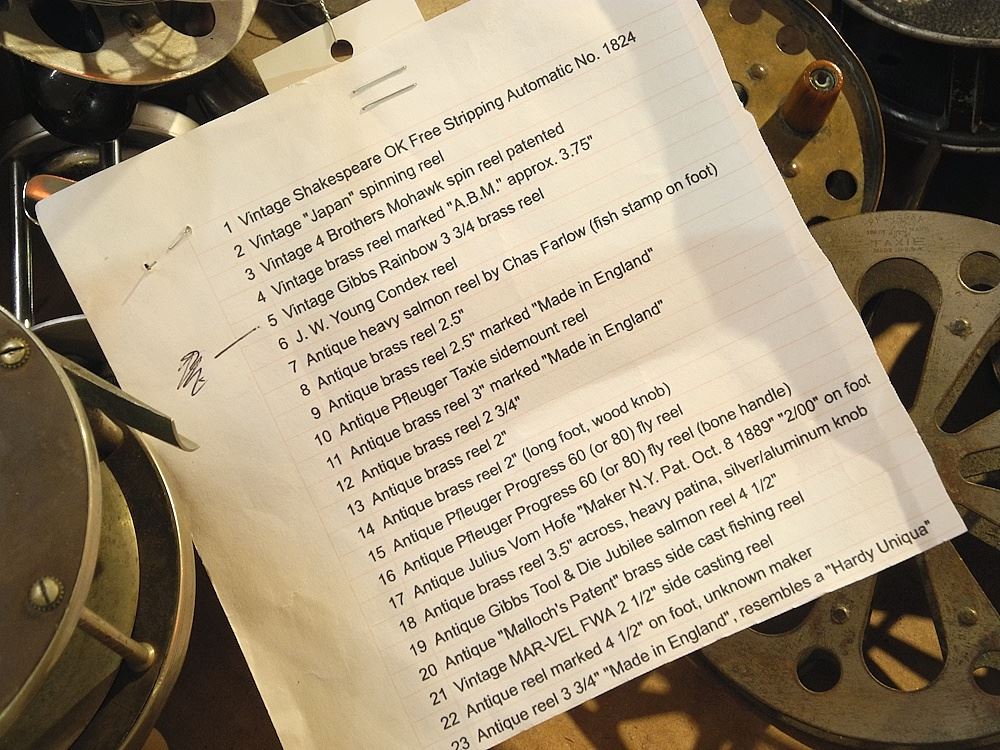 LOT 163 Collection of Antique Brass & Other Fly Fishing Reels Incl. Gibbs/Farlow /Pfleuger. Estimate: $300 - $500 Sold For: $900 Auction Date: Tuesday, January 13 2026 at 4:00 PM
