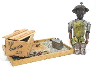 LOT 42 Folk Art "Danger Dynamite" Miner Diorama, 12"h. Estimate: $60 - $100 Sold For: $50 Auction Date: Tuesday, January 13 2026 at 4:00 PM