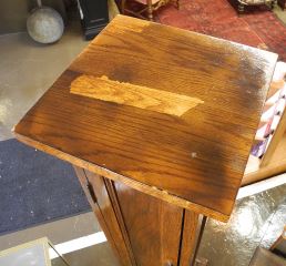 LOT 45 Oak Column Cabinet, 48"h. Estimate: $100 - $200 Sold For: $90 Auction Date: Tuesday, January 13 2026 at 4:00 PM
